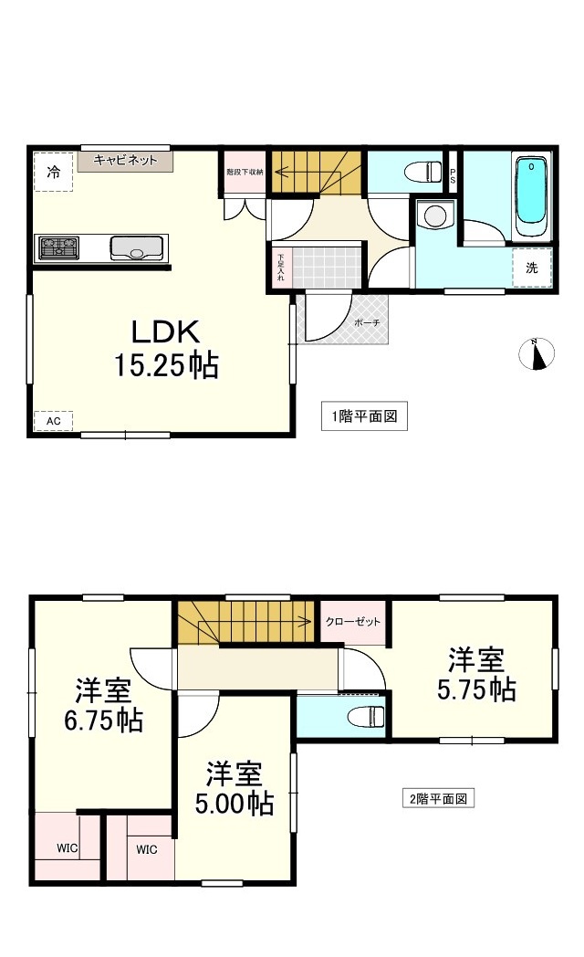 | 間取内訳 | LDK 15.25帖/洋室 6.75帖/洋室 5.75帖/洋室 5.00帖 | ||